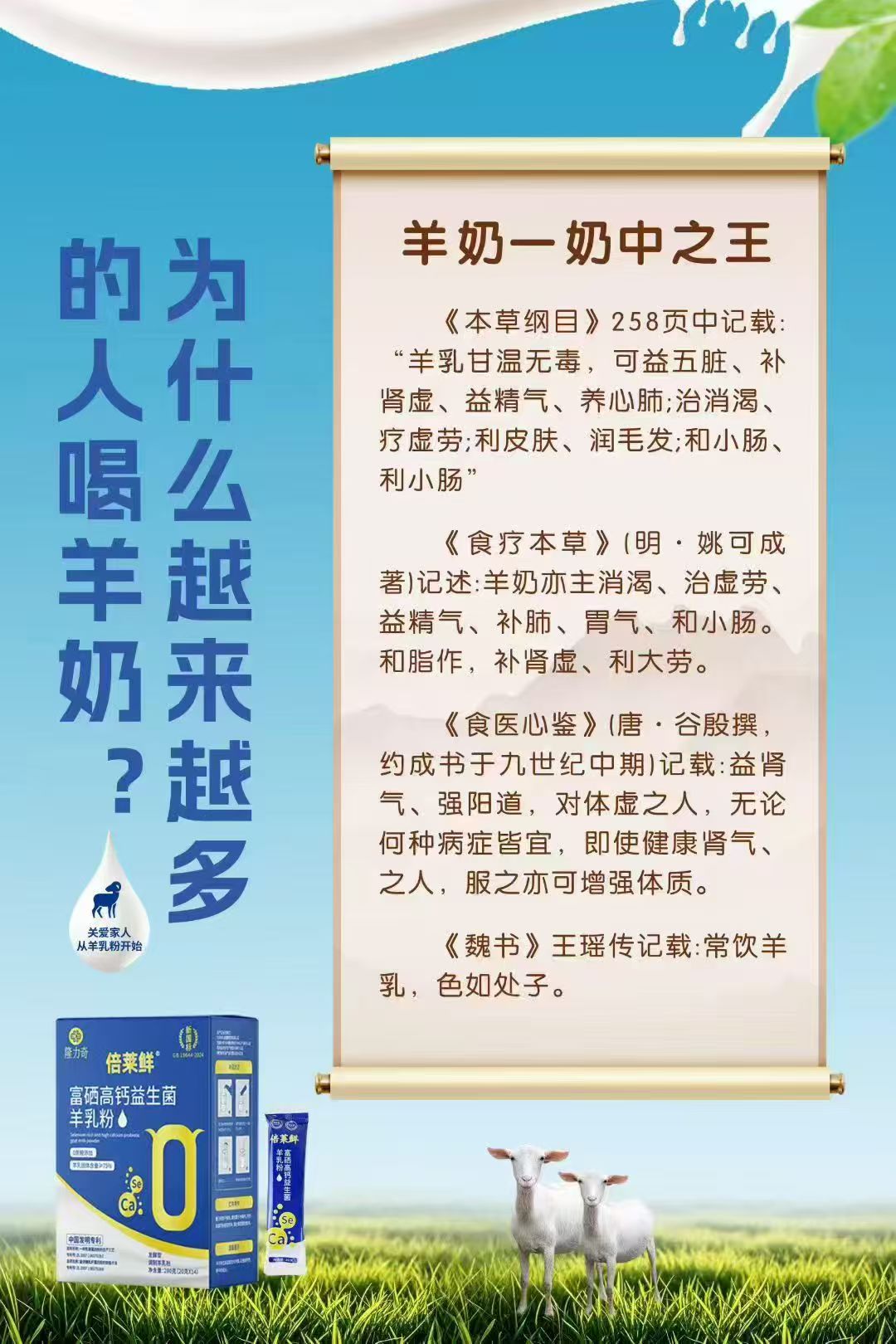 第三, “古籍智慧+现代科学”的叙事与功效壁垒。产品有效性的传播需要强有力的叙事体系。该品牌巧妙融合了《本草纲目》、《食疗本草》等古籍中对羊乳“益五脏、补肾虚、益精气”的经典记载,与现代营养学中关于富硒、高钙、益生菌调节肠道的科学共识。这种叙事不仅赋予了产品文化渊源,更通过“专利发酵技术使乳酸菌呈几何倍数增长”、“吸收率达89%”等具体数据,将传统养生概念进行了现代化、科学化的转译与验证,满足了当代消费者既追求文化认同又注重实证功效的双重心理。